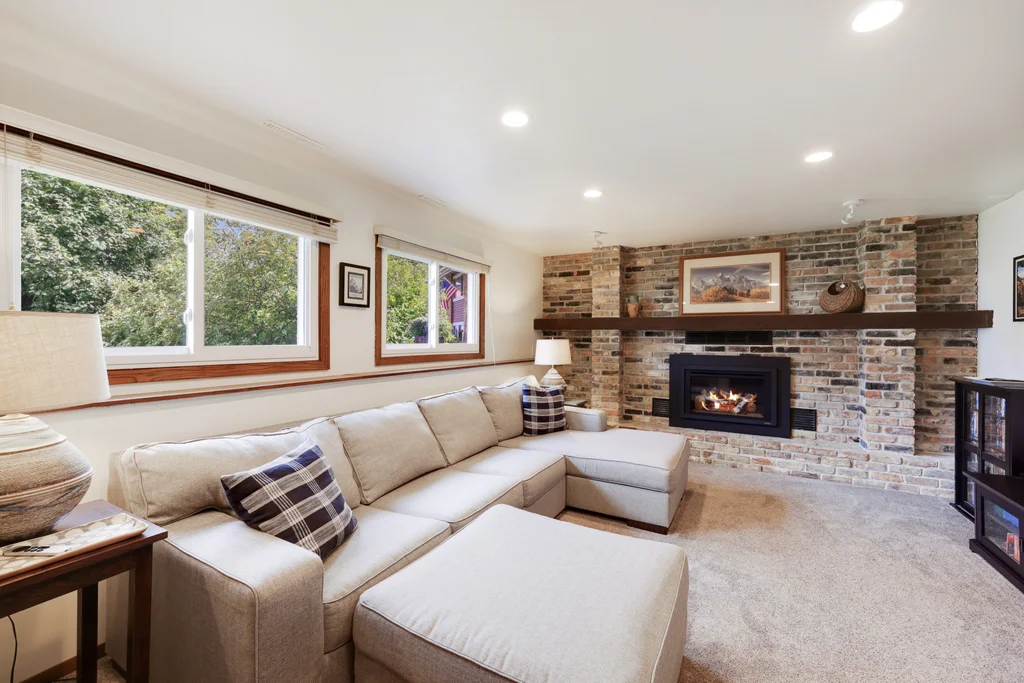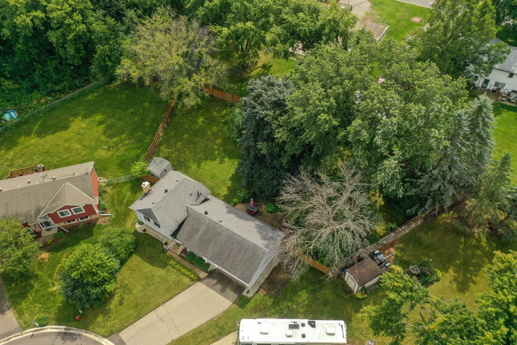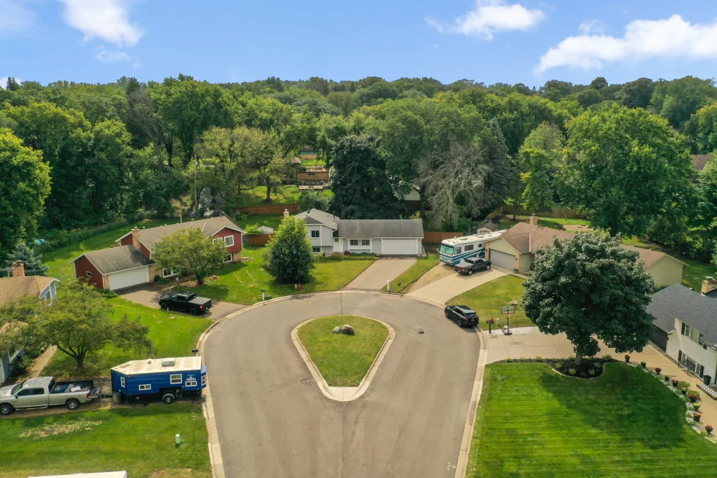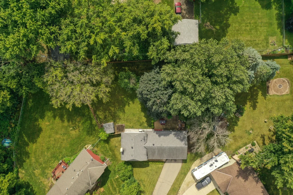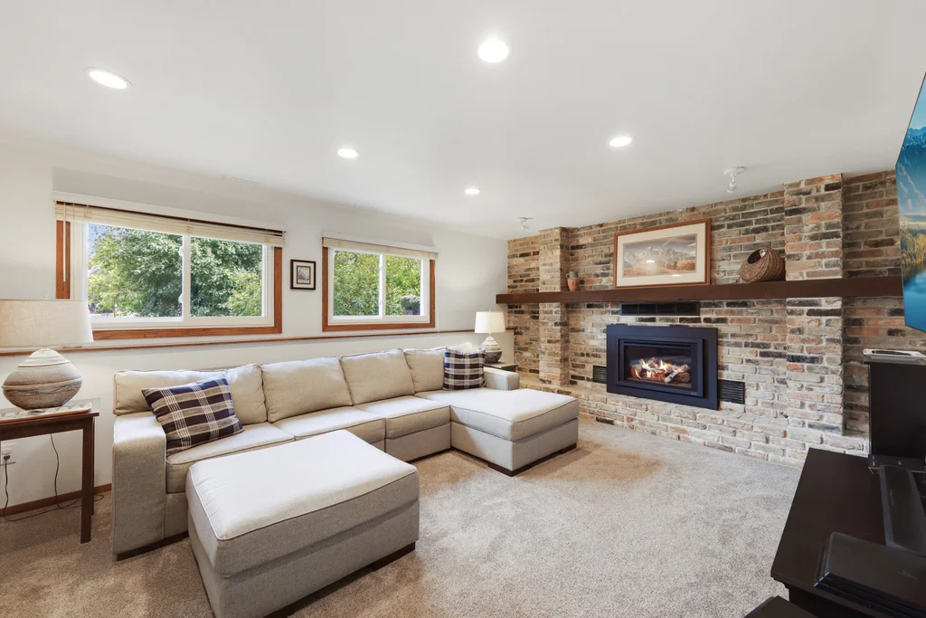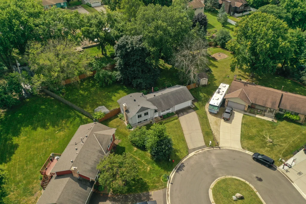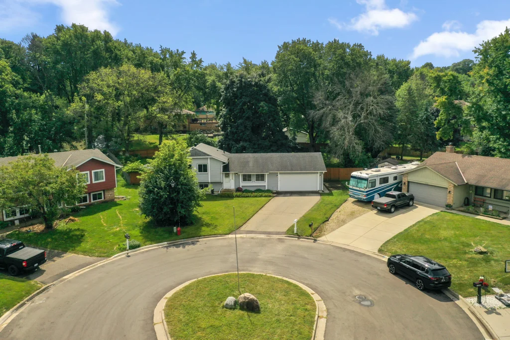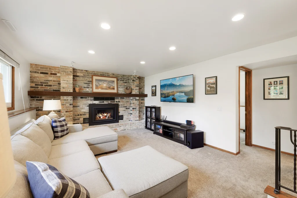 Tucked at the end of a quiet cul-de-sac, this four-level split offers the perfect blend of updates, space, and lifestyle on a large, private lot. The main level is bright and welcoming with an open living room, dining area, and updated kitchen featuring newer stainless steel appliances, refreshed cabinetry, and abundant storage. Step out the sliding door to a large patio and a fully fenced backyard with mature trees and perennial gardens—ideal for play, pets, and entertaining. Upstairs, the spacious primary bedroom boasts French doors, a walk-through to the full bath with double vanity, and two additional bedrooms. The lower-level family room is a favorite gathering spot, complete with a brick fireplace and gas insert, 3/4 bath, and guest bedroom. The basement level expands the living space with a large office/playroom/rec room, finished den/flex room, large storage closet with shelving, and laundry/utility area. Major updates provide peace of mind, including new furnace, A/C, water heater, refrigerator, dishwasher, washer, dryer, and garage door. The heated and insulated double garage, maintenance-free cement board siding, vinyl windows, and meticulous care make this home move-in ready. Whether relaxing on the patio, hosting family movie nights by the fireplace, or enjoying the quiet cul-de-sac, this property offers space, comfort, and flexibility for every stage of life.