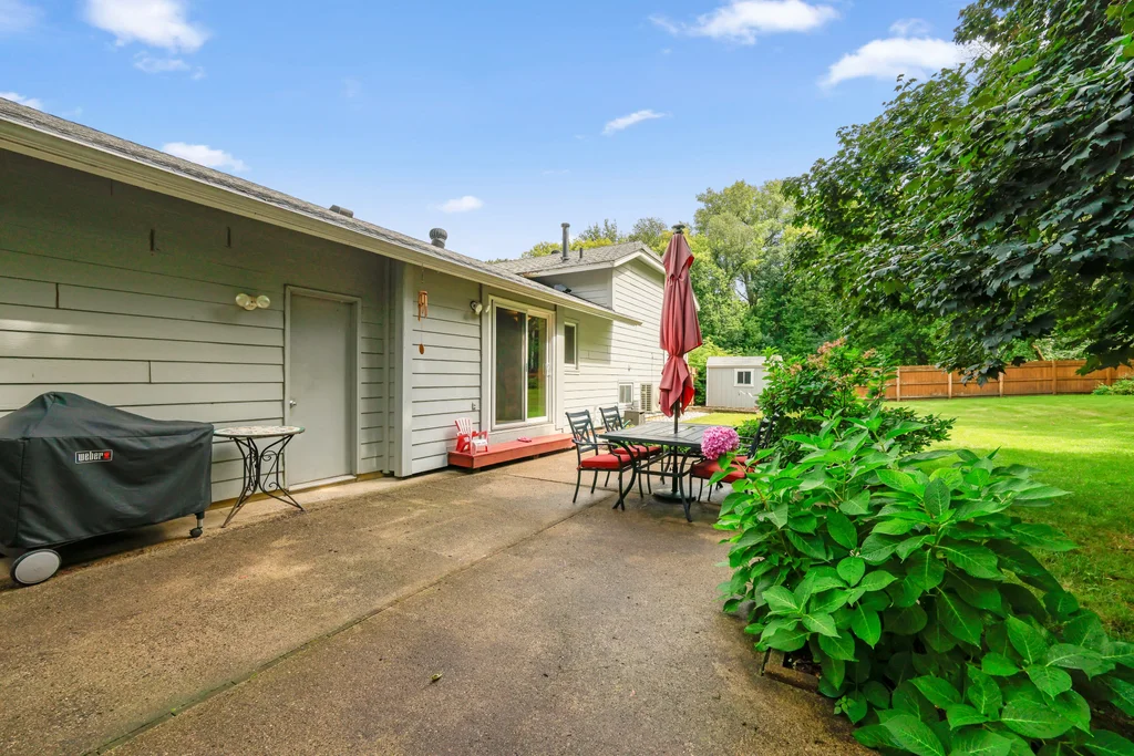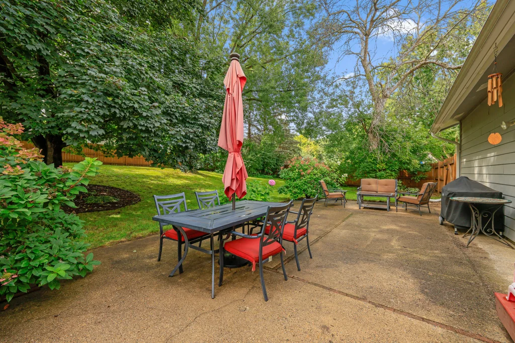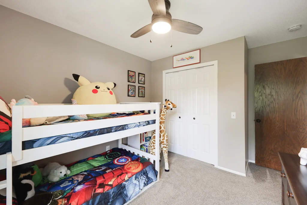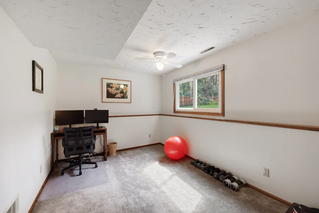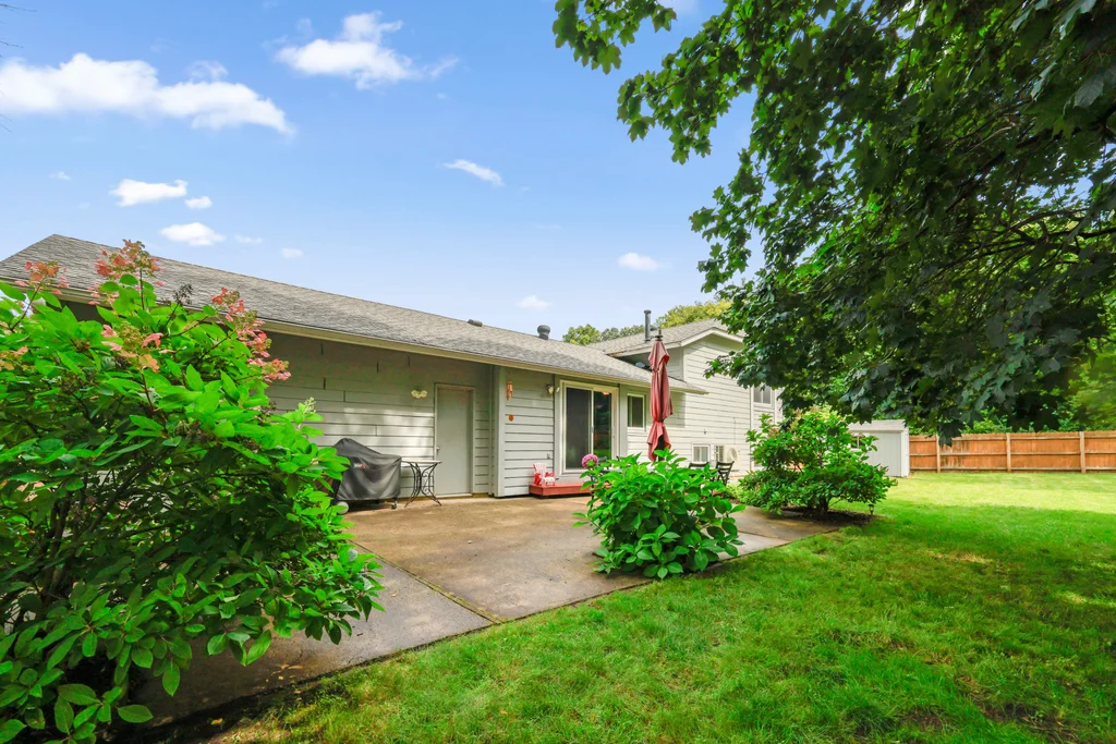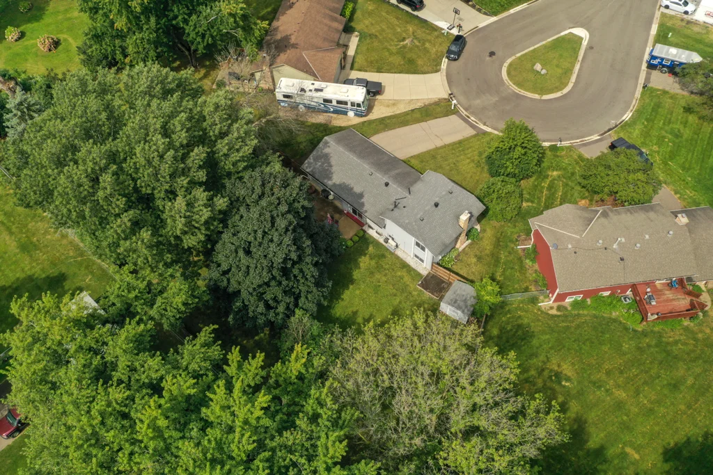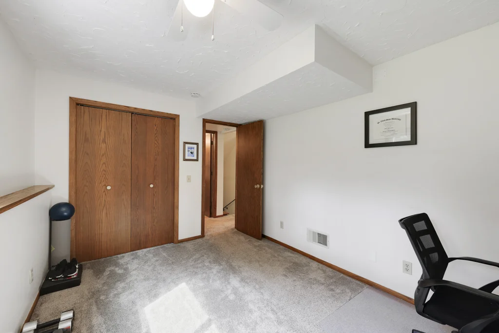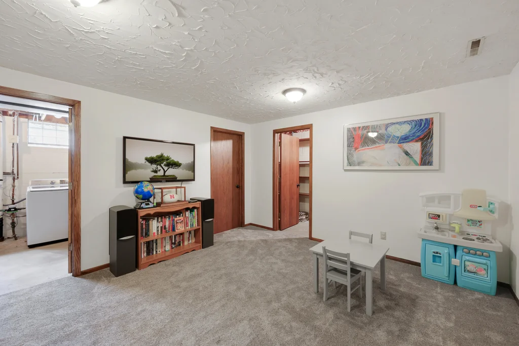 Tucked at the end of a quiet cul-de-sac, this four-level split offers the perfect blend of updates, space, and lifestyle on a large, private lot. The main level is bright and welcoming with an open living room, dining area, and updated kitchen featuring newer stainless steel appliances, refreshed cabinetry, and abundant storage. Step out the sliding door to a large patio and a fully fenced backyard with mature trees and perennial gardens—ideal for play, pets, and entertaining. Upstairs, the spacious primary bedroom boasts French doors, a walk-through to the full bath with double vanity, and two additional bedrooms. The lower-level family room is a favorite gathering spot, complete with a brick fireplace and gas insert, 3/4 bath, and guest bedroom. The basement level expands the living space with a large office/playroom/rec room, finished den/flex room, large storage closet with shelving, and laundry/utility area. Major updates provide peace of mind, including new furnace, A/C, water heater, refrigerator, dishwasher, washer, dryer, and garage door. The heated and insulated double garage, maintenance-free cement board siding, vinyl windows, and meticulous care make this home move-in ready. Whether relaxing on the patio, hosting family movie nights by the fireplace, or enjoying the quiet cul-de-sac, this property offers space, comfort, and flexibility for every stage of life.