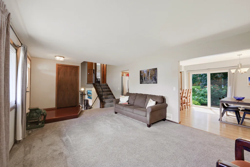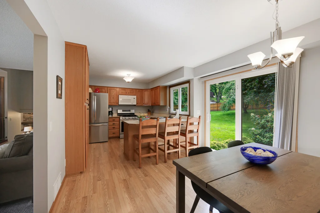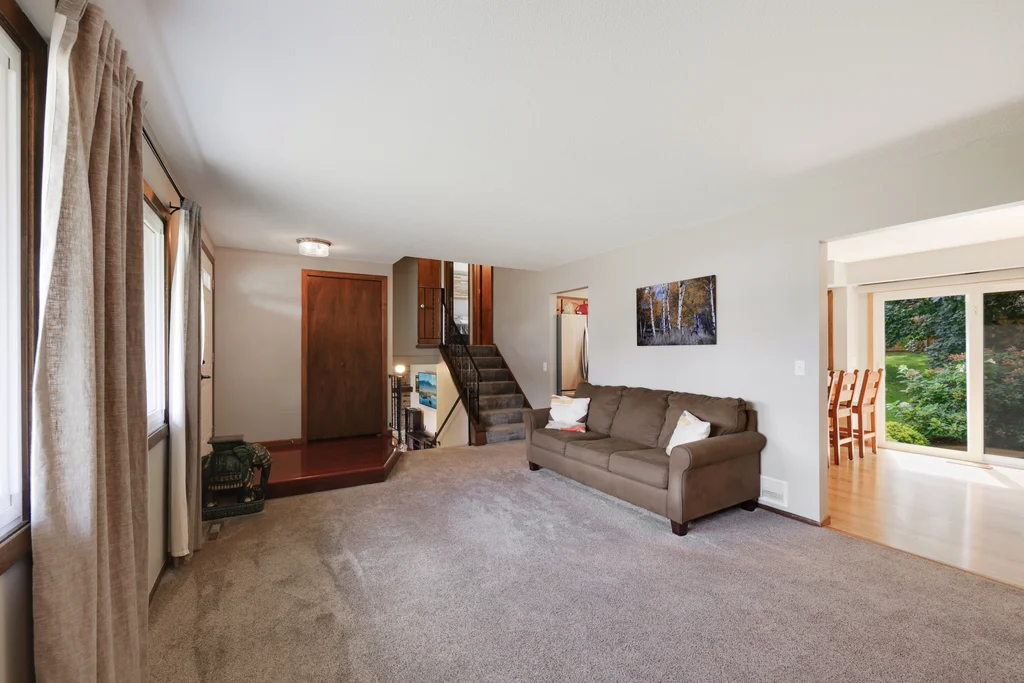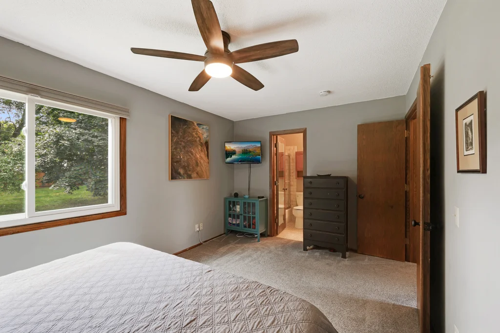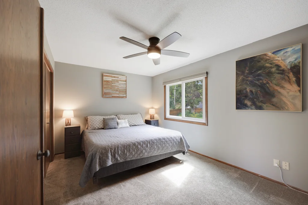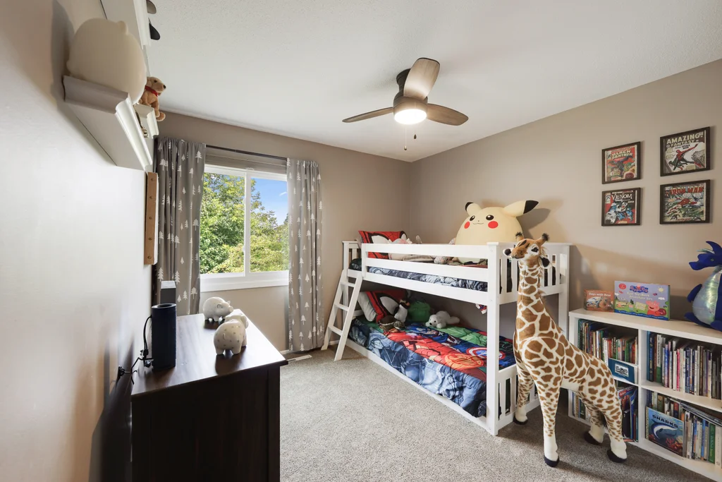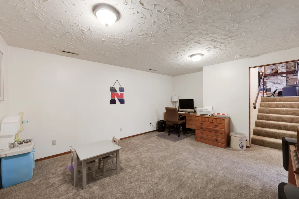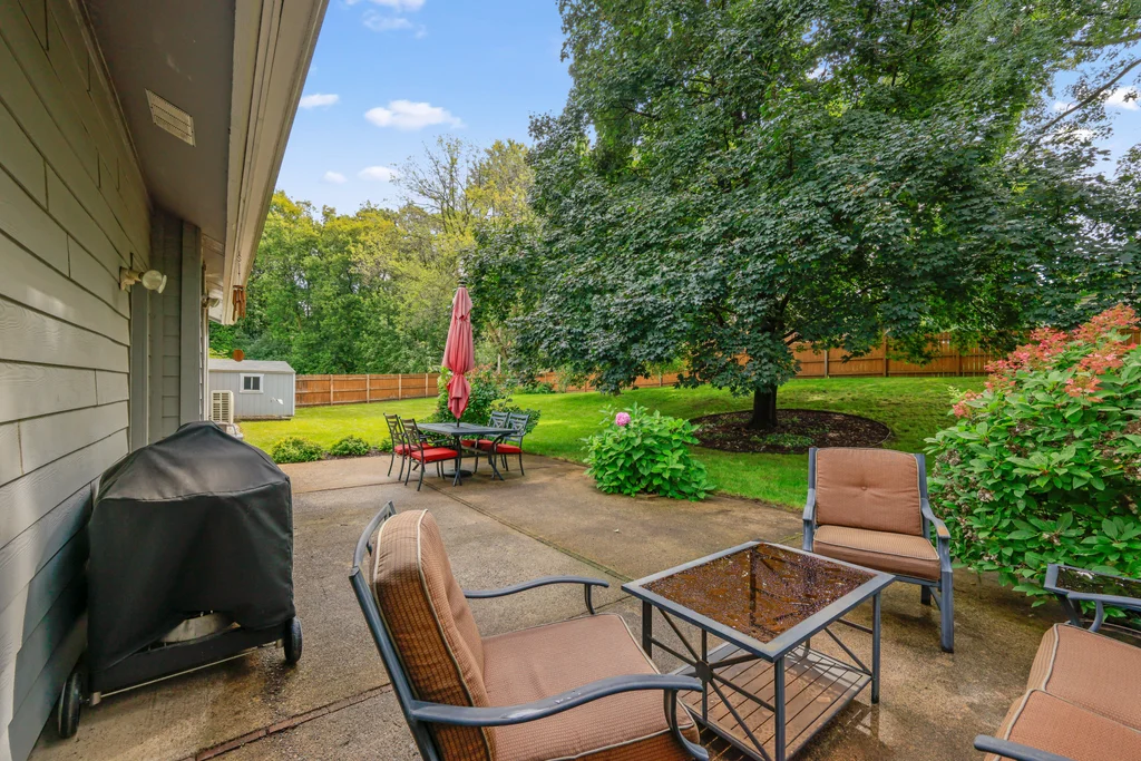 Tucked at the end of a quiet cul-de-sac, this four-level split offers the perfect blend of updates, space, and lifestyle on a large, private lot. The main level is bright and welcoming with an open living room, dining area, and updated kitchen featuring newer stainless steel appliances, refreshed cabinetry, and abundant storage. Step out the sliding door to a large patio and a fully fenced backyard with mature trees and perennial gardens—ideal for play, pets, and entertaining. Upstairs, the spacious primary bedroom boasts French doors, a walk-through to the full bath with double vanity, and two additional bedrooms. The lower-level family room is a favorite gathering spot, complete with a brick fireplace and gas insert, 3/4 bath, and guest bedroom. The basement level expands the living space with a large office/playroom/rec room, finished den/flex room, large storage closet with shelving, and laundry/utility area. Major updates provide peace of mind, including new furnace, A/C, water heater, refrigerator, dishwasher, washer, dryer, and garage door. The heated and insulated double garage, maintenance-free cement board siding, vinyl windows, and meticulous care make this home move-in ready. Whether relaxing on the patio, hosting family movie nights by the fireplace, or enjoying the quiet cul-de-sac, this property offers space, comfort, and flexibility for every stage of life.