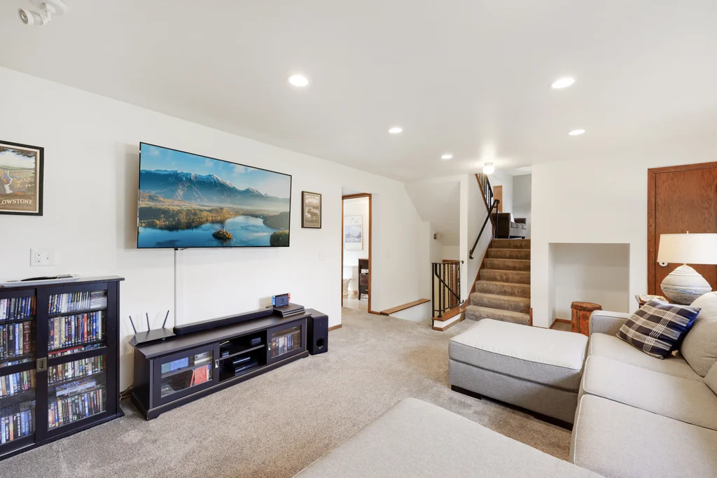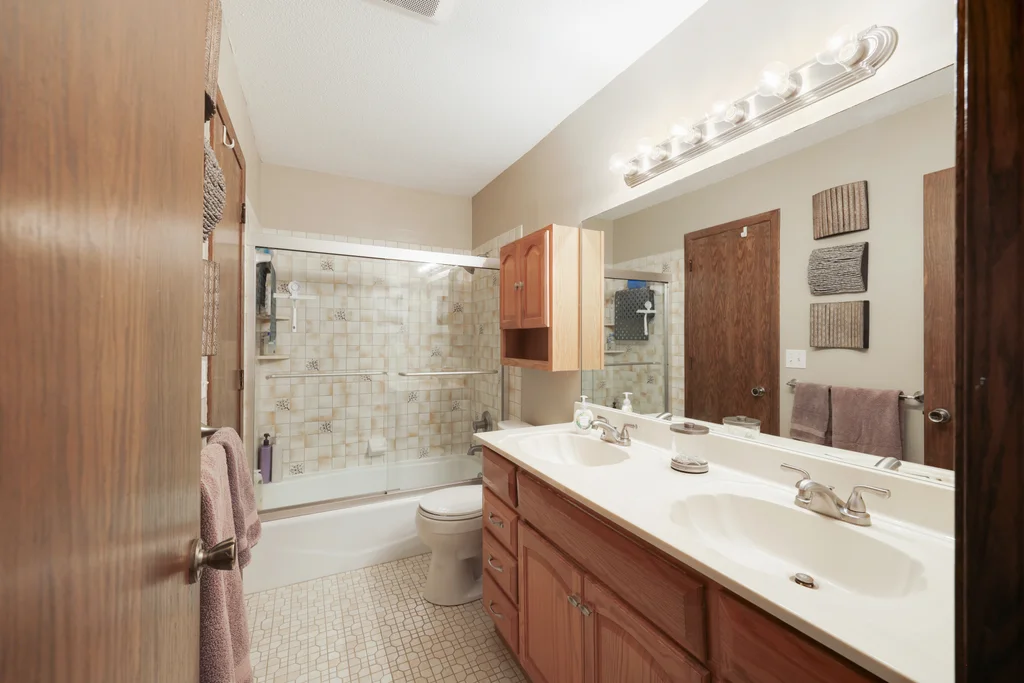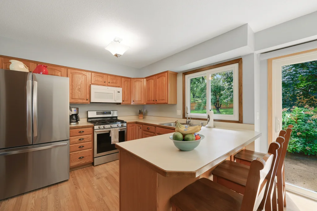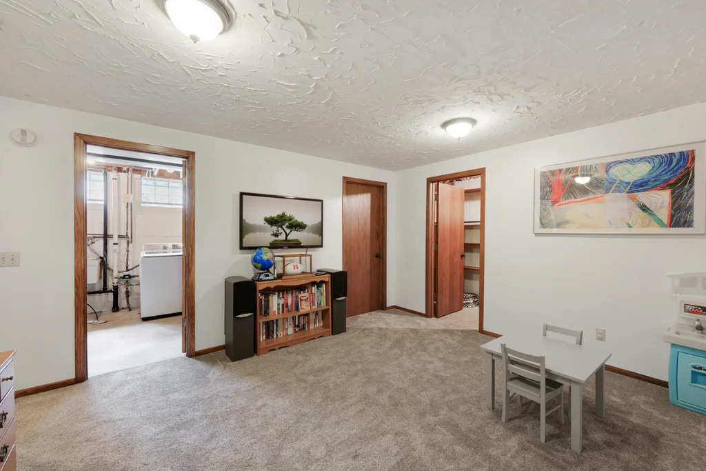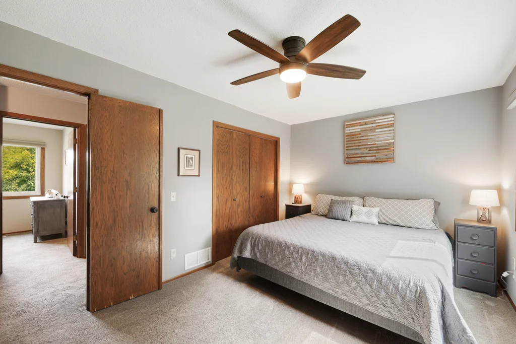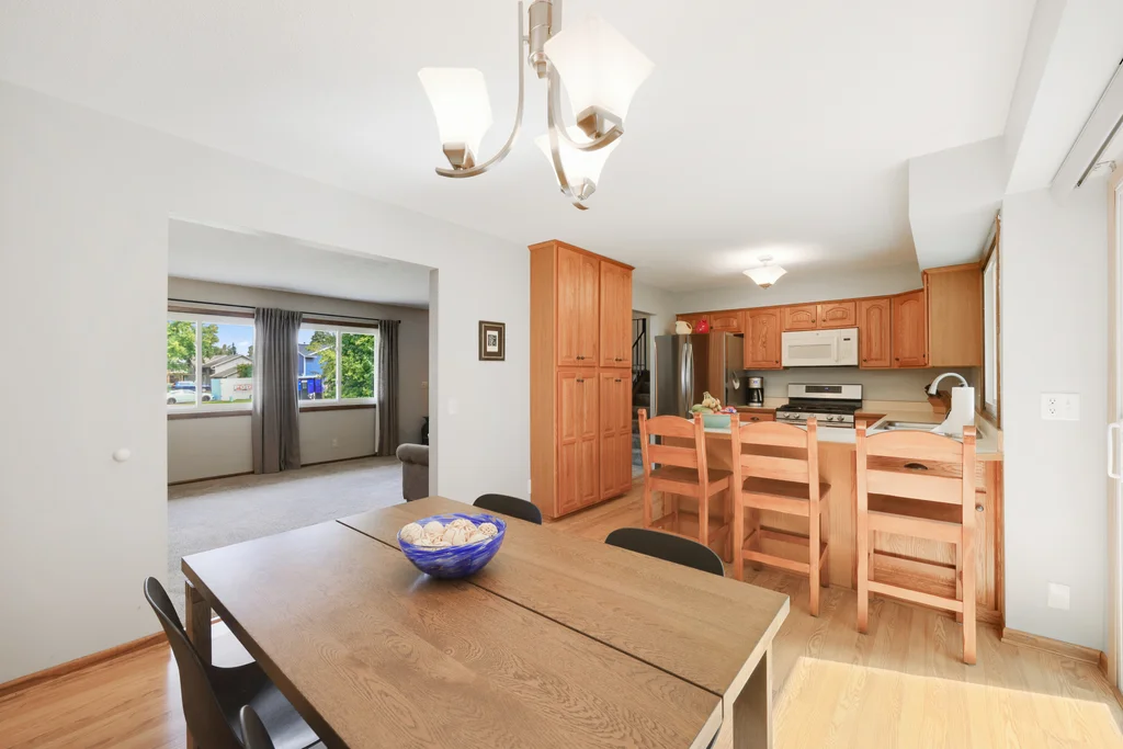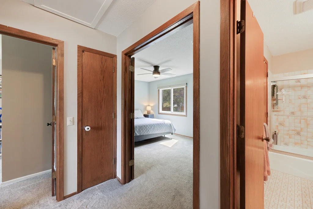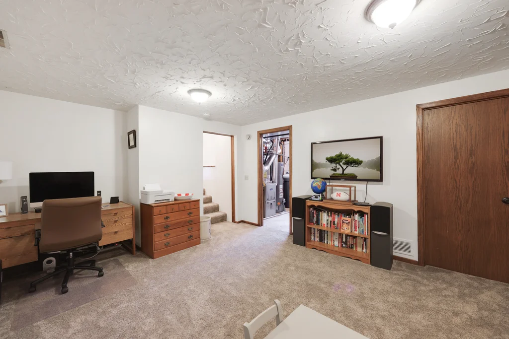 Tucked at the end of a quiet cul-de-sac, this four-level split offers the perfect blend of updates, space, and lifestyle on a large, private lot. The main level is bright and welcoming with an open living room, dining area, and updated kitchen featuring newer stainless steel appliances, refreshed cabinetry, and abundant storage. Step out the sliding door to a large patio and a fully fenced backyard with mature trees and perennial gardens—ideal for play, pets, and entertaining. Upstairs, the spacious primary bedroom boasts French doors, a walk-through to the full bath with double vanity, and two additional bedrooms. The lower-level family room is a favorite gathering spot, complete with a brick fireplace and gas insert, 3/4 bath, and guest bedroom. The basement level expands the living space with a large office/playroom/rec room, finished den/flex room, large storage closet with shelving, and laundry/utility area. Major updates provide peace of mind, including new furnace, A/C, water heater, refrigerator, dishwasher, washer, dryer, and garage door. The heated and insulated double garage, maintenance-free cement board siding, vinyl windows, and meticulous care make this home move-in ready. Whether relaxing on the patio, hosting family movie nights by the fireplace, or enjoying the quiet cul-de-sac, this property offers space, comfort, and flexibility for every stage of life.
