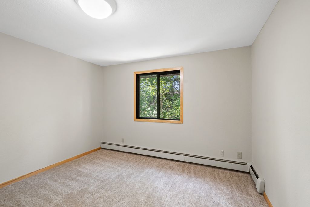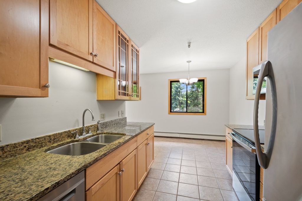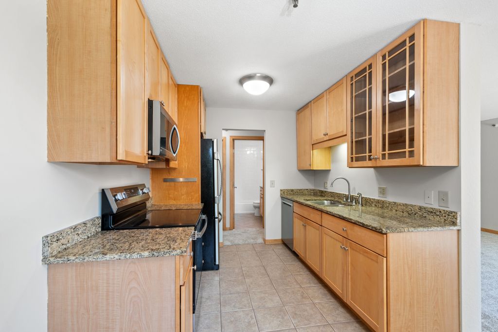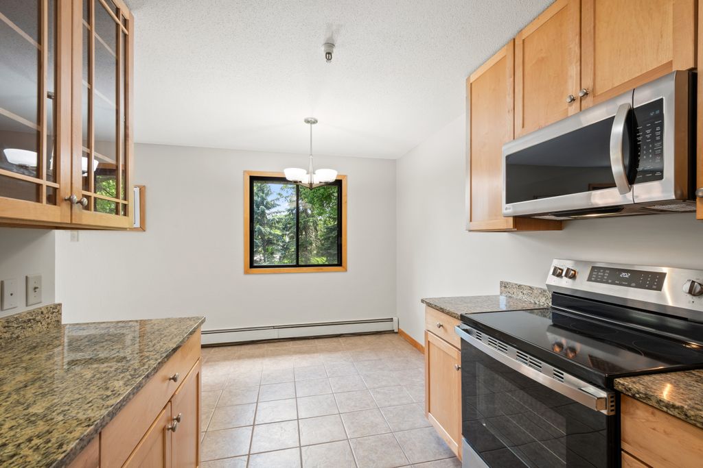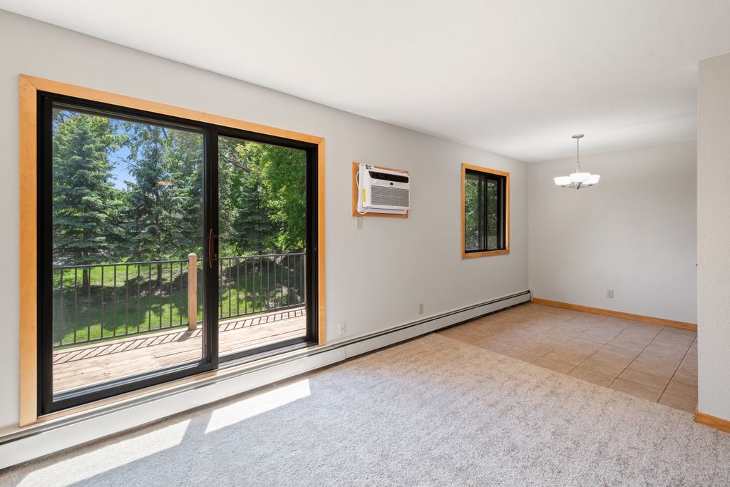Sunny South & West Facing Corner Condo in a Peaceful, Wooded Roseville Setting Near Como Park!! Tucked at the end of a quiet cul-de-sac and surrounded by mature pines, this beautifully updated corner unit in Dellwood Condominiums offers a rare blend of serenity and convenience in the heart of Roseville—just minutes from Como Park. Step into a bright and welcoming space with fresh paint and brand-new carpet throughout. The sun-filled, south-facing living area opens to a cedar deck—perfect for relaxing with your morning coffee or evening glass of wine while taking in views of the peaceful, tree-lined yard. The stylish kitchen features granite countertops, stainless steel appliances (including a brand-new oven), a two-year-old microwave and dishwasher, and gorgeous modern cabinetry. The updated bathroom showcases a resurfaced tub (complete with a transferable five-year warranty), and an all-new tile surround. Enjoy the flexibility of two community laundry rooms, plus a private in-unit laundry hookup for an optional future in-unit washer/dryer. Enjoy the luxury of your heated underground parking space with an extra storage area. Dellwood is a professionally managed, 12-unit community with recent building upgrades, including a new roof and boiler (2021). HOA dues cover heat, water, secure underground parking, video security, sprinkler system, and intercom entry. Pet-friendly and ideally located near shops, restaurants, and excellent transit options, this low-maintenance condo offers a peaceful retreat with easy access to city conveniences. Don’t miss your chance to own in this hidden gem of a community—schedule your private tour today!