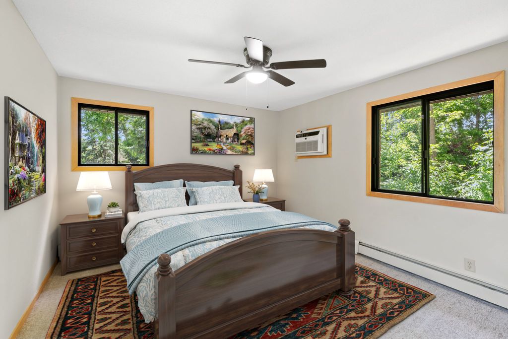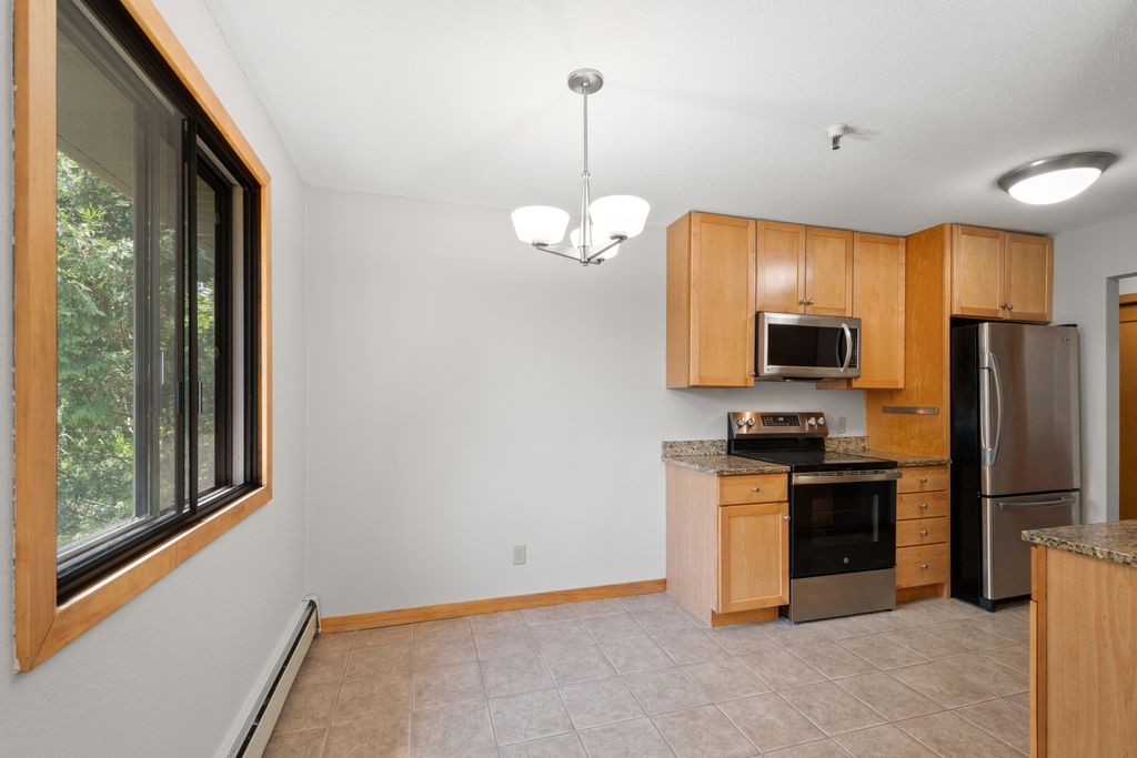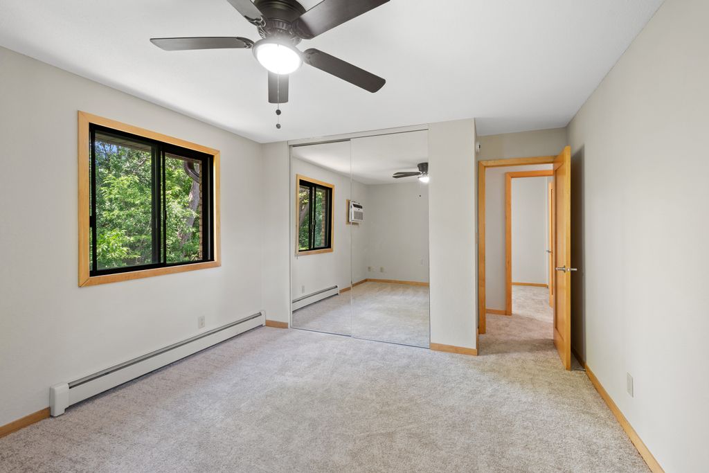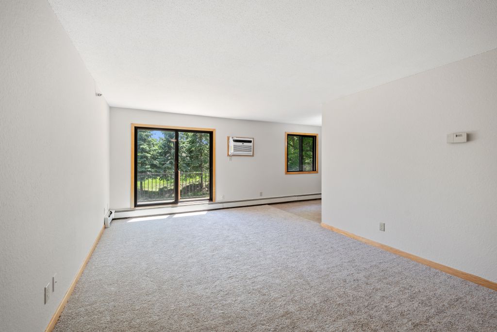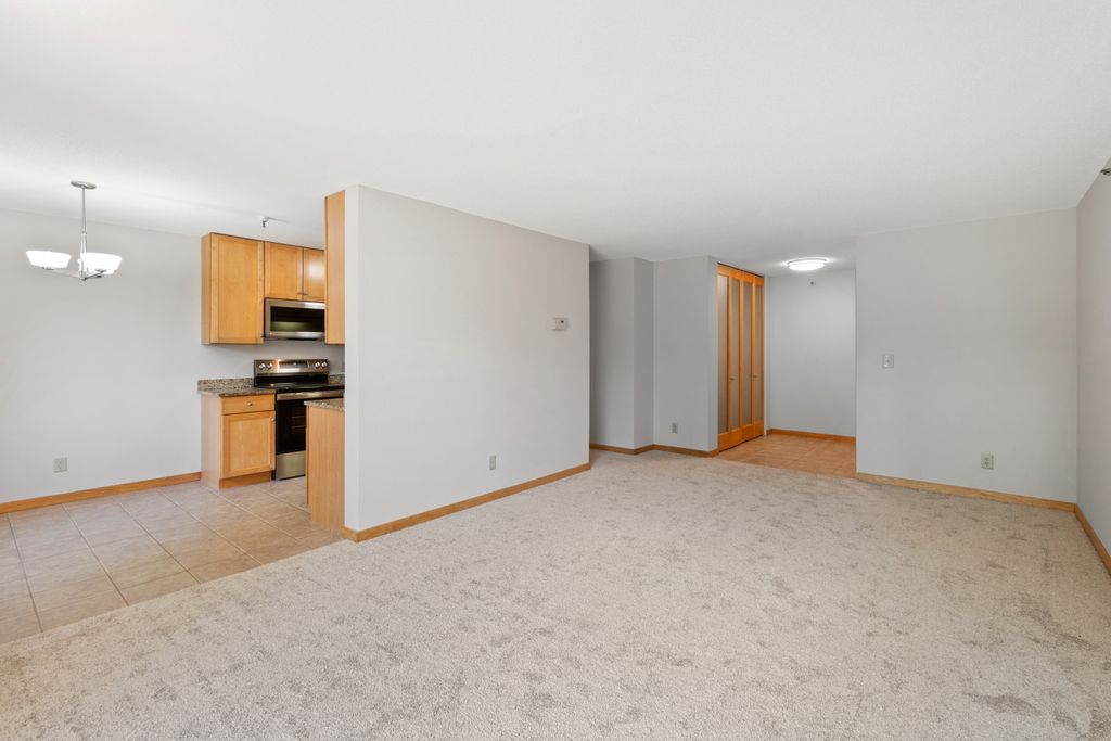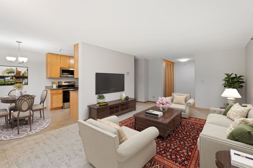Sunny South & West Facing Corner Condo in a Peaceful, Wooded Roseville Setting Near Como Park!! Tucked at the end of a quiet cul-de-sac and surrounded by mature pines, this beautifully updated corner unit in Dellwood Condominiums offers a rare blend of serenity and convenience in the heart of Roseville—just minutes from Como Park. Step into a bright and welcoming space with fresh paint and brand-new carpet throughout. The sun-filled, south-facing living area opens to a cedar deck—perfect for relaxing with your morning coffee or evening glass of wine while taking in views of the peaceful, tree-lined yard. The stylish kitchen features granite countertops, stainless steel appliances (including a brand-new oven), a two-year-old microwave and dishwasher, and gorgeous modern cabinetry. The updated bathroom showcases a resurfaced tub (complete with a transferable five-year warranty), and an all-new tile surround. Enjoy the flexibility of two community laundry rooms, plus a private in-unit laundry hookup for an optional future in-unit washer/dryer. Enjoy the luxury of your heated underground parking space with an extra storage area. Dellwood is a professionally managed, 12-unit community with recent building upgrades, including a new roof and boiler (2021). HOA dues cover heat, water, secure underground parking, video security, sprinkler system, and intercom entry. Pet-friendly and ideally located near shops, restaurants, and excellent transit options, this low-maintenance condo offers a peaceful retreat with easy access to city conveniences. Don’t miss your chance to own in this hidden gem of a community—schedule your private tour today!