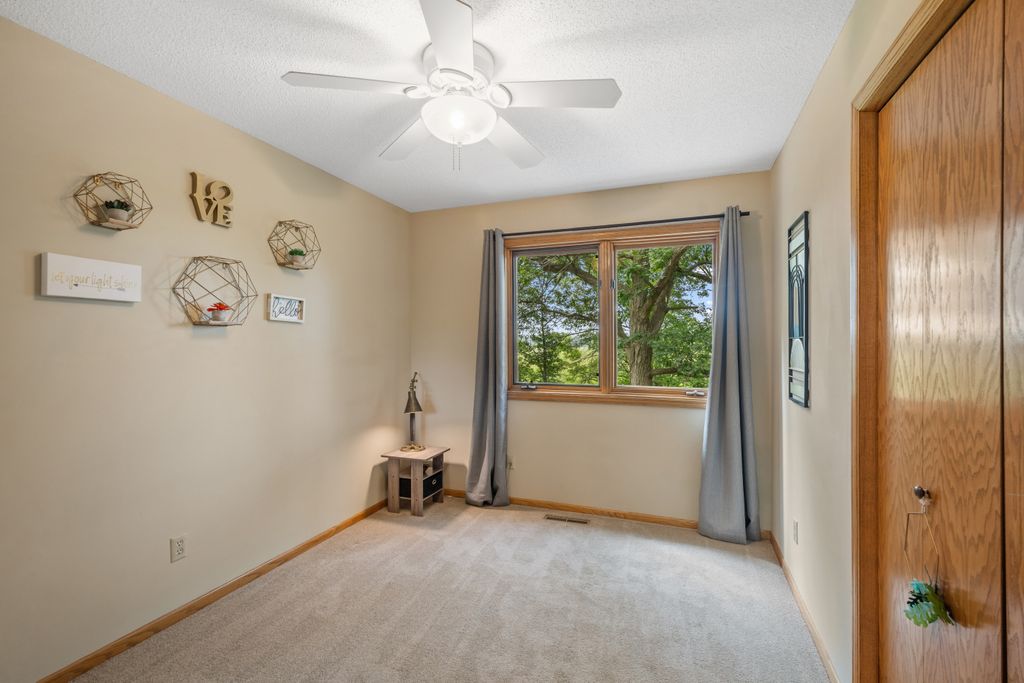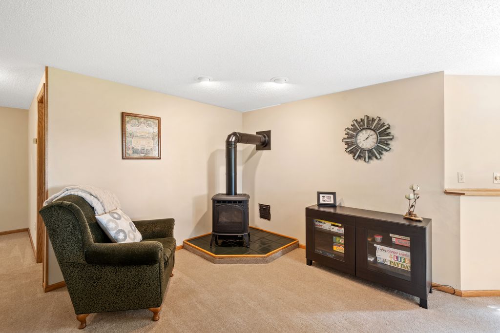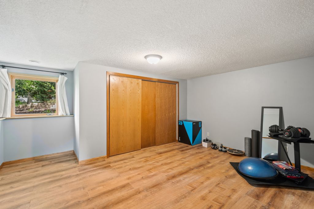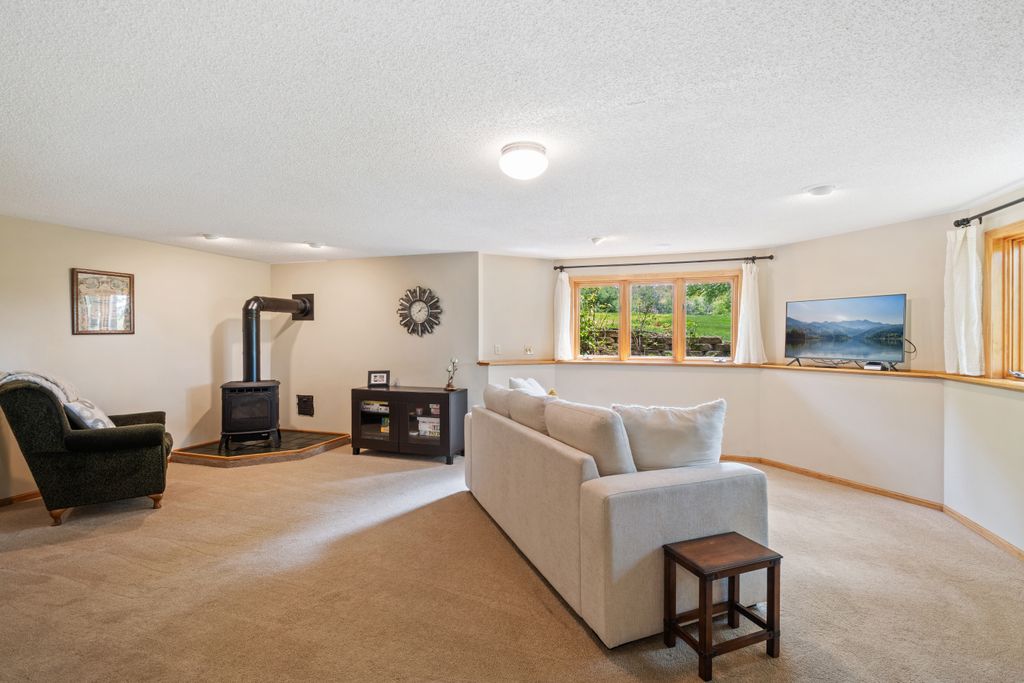 The lower level features a bedroom and entertaining space with look out windows and plenty of natural light.