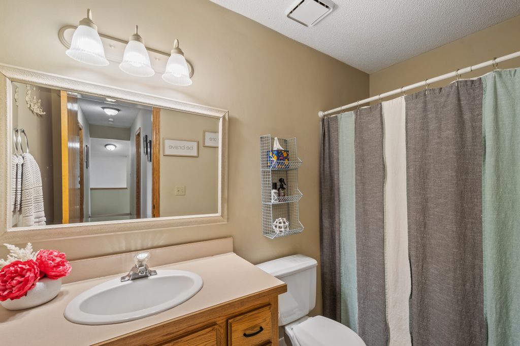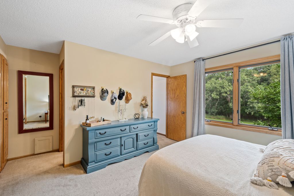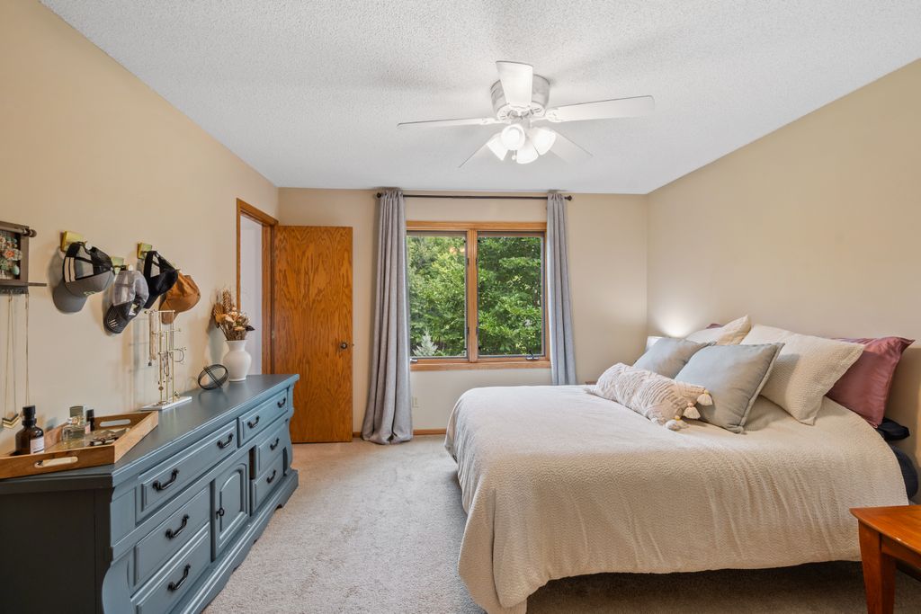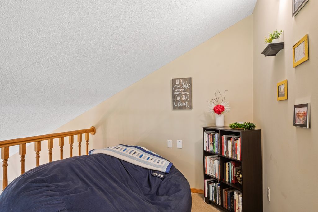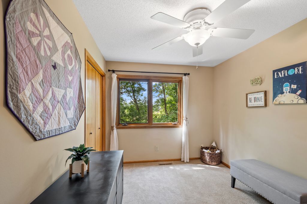 The lower level features a bedroom and entertaining space with look out windows and plenty of natural light.