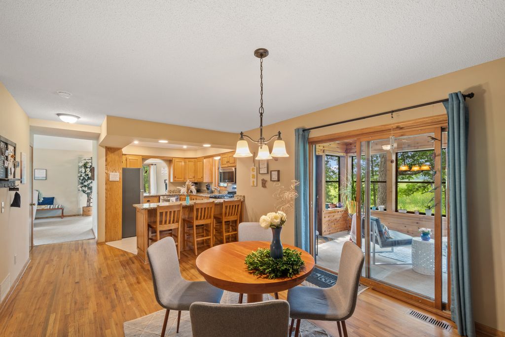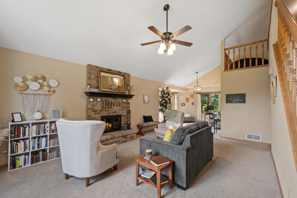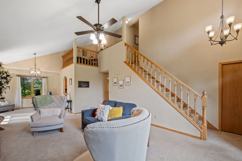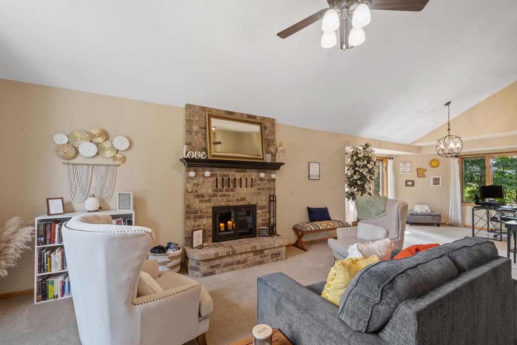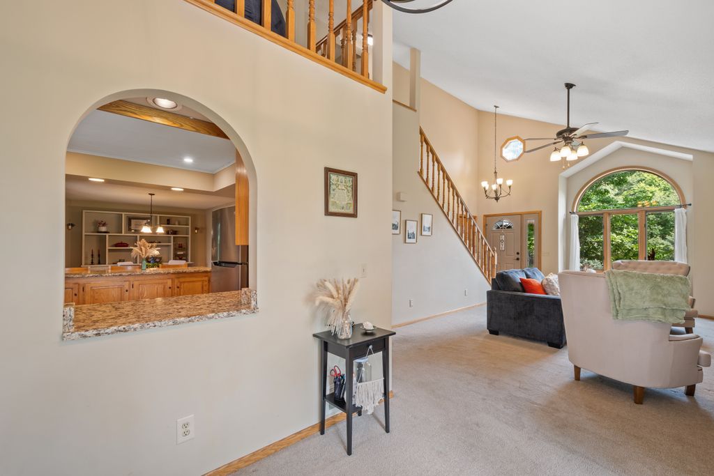Inside, the home features a spacious and inviting layout with room for both everyday living and entertaining. The open-concept main level offers a beautiful vaulted main living area, functional kitchen with brand new appliances, and both informal and more formal dining space that maximize the view of the outdoors. The 3 season porch allows you to be surrounded by the beauty of the lot, while being sheltered from the elements.