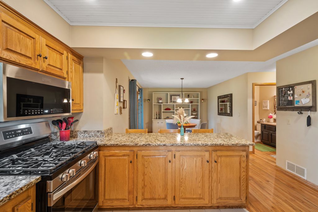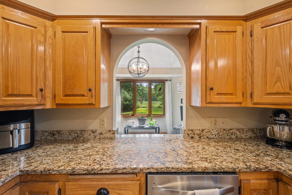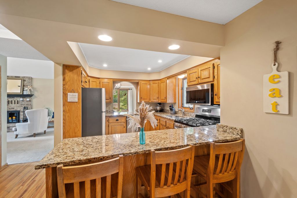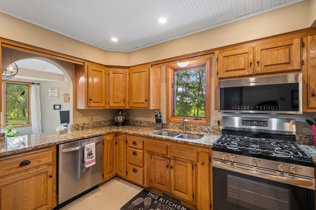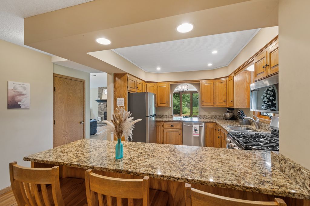 Inside, the home features a spacious and inviting layout with room for both everyday living and entertaining. The open-concept main level offers a beautiful vaulted main living area, functional kitchen with brand new appliances, and both informal and more formal dining space that maximize the view of the outdoors. The 3 season porch allows you to be surrounded by the beauty of the lot, while being sheltered from the elements.