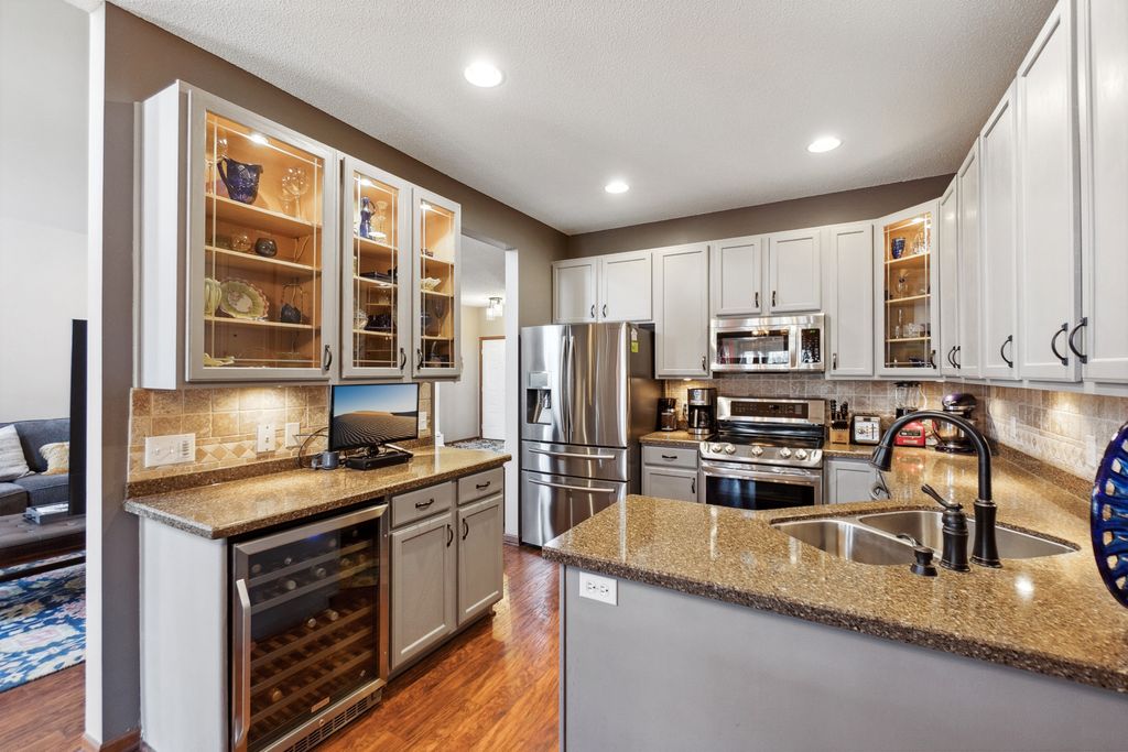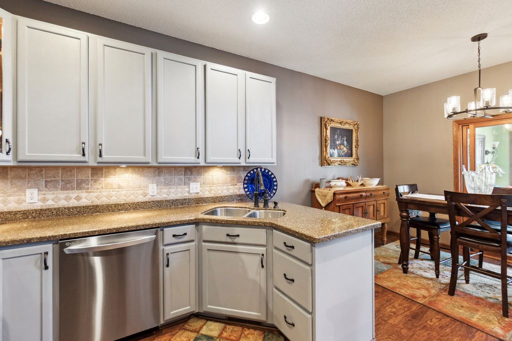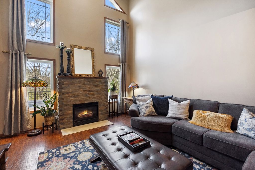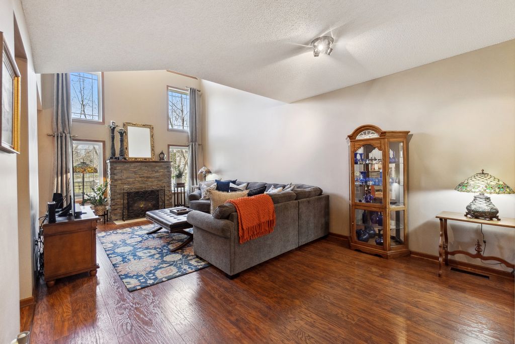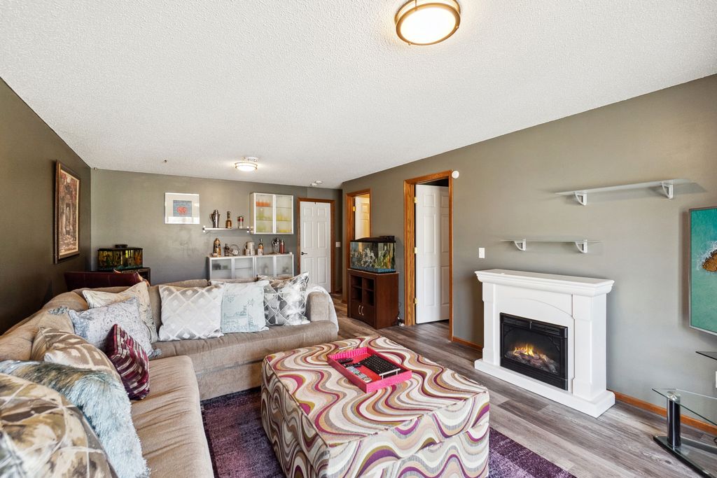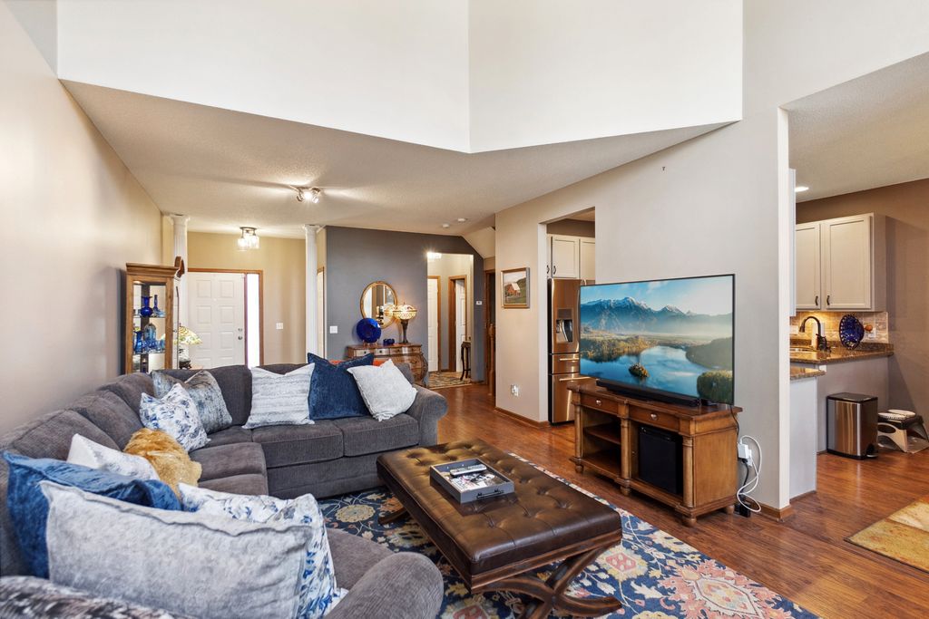Luxurious and meticulously maintained townhome in prime Apple Valley location! This bright and spacious 3BR/4BA home offers an open-concept floor plan with soaring vaulted ceilings, a dramatic 2-story great room, and a wall of windows that fills the space with natural light. The main level features a beautifully appointed living room with a gas fireplace and a large dining area that flows seamlessly to the updated kitchen, complete with granite countertops, breakfast bar, wine fridge, and brand-new stainless-steel appliances. Step out to your private deck offering great space for outdoor entertaining and relaxation. The upper level boasts a stunning owner’s suite with vaulted ceiling, large walk-in closet, and spa-like ensuite bath with jetted tub, separate shower, and double sinks. The versatile loft offers the perfect space for a home office, playroom, or potential 4th bedroom with the addition of a wall. Convenient upper-level laundry near bedrooms. The finished walk-out lower level includes a spacious family room, third bedroom, and full bath—ideal for guests or extended living. Enjoy outdoor living with a patio, and the convenience of an attached two-car garage. Located in the award-winning ISD 196 school district and within walking distance to parks, shopping, dining, and more. Association amenities include a community pool and playground. Don’t miss this opportunity to own a stunning home in an unbeatable location!