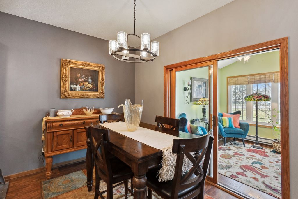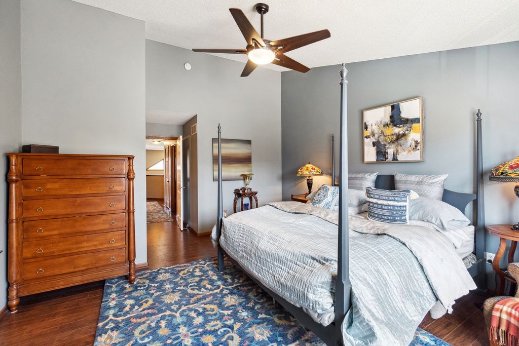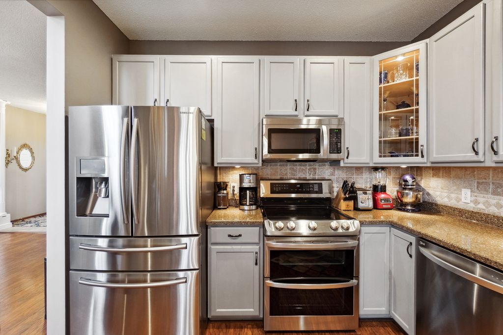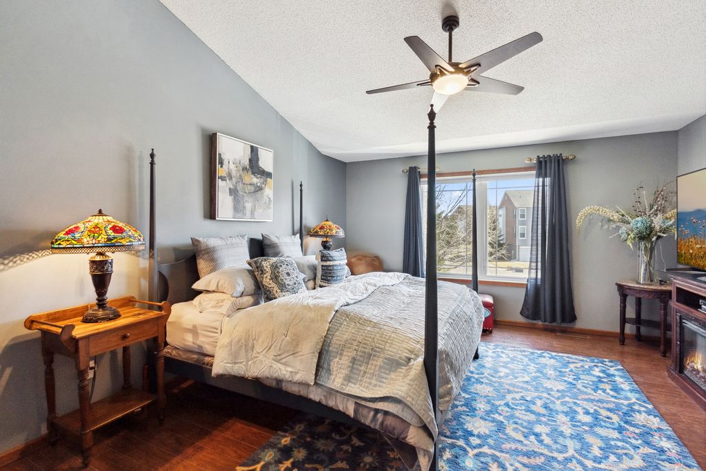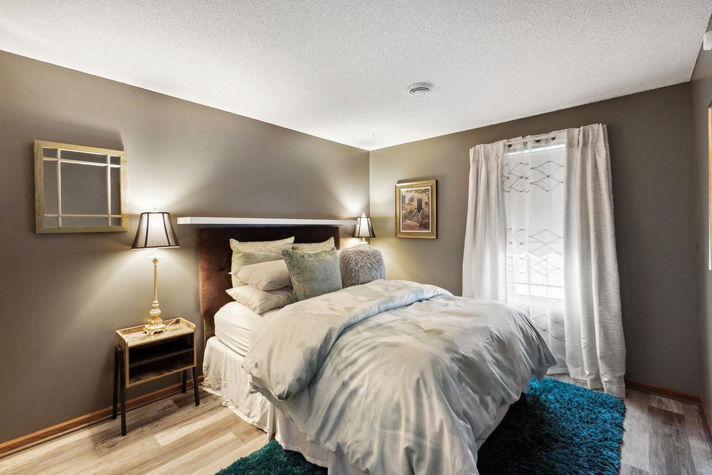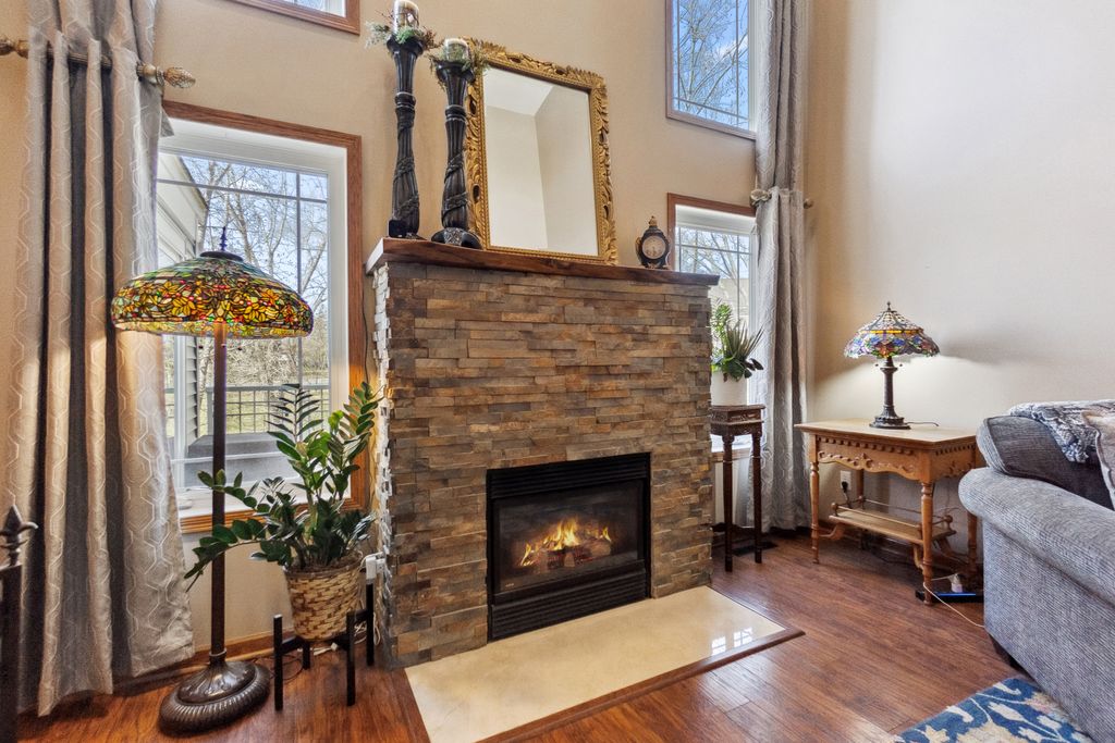 Luxurious and meticulously maintained townhome in prime Apple Valley location! This bright and spacious 3BR/4BA home offers an open-concept floor plan with soaring vaulted ceilings, a dramatic 2-story great room, and a wall of windows that fills the space with natural light. The main level features a beautifully appointed living room with a gas fireplace and a large dining area that flows seamlessly to the updated kitchen, complete with granite countertops, breakfast bar, wine fridge, and brand-new stainless-steel appliances. Step out to your private deck offering great space for outdoor entertaining and relaxation. The upper level boasts a stunning owner’s suite with vaulted ceiling, large walk-in closet, and spa-like ensuite bath with jetted tub, separate shower, and double sinks. The versatile loft offers the perfect space for a home office, playroom, or potential 4th bedroom with the addition of a wall. Convenient upper-level laundry near bedrooms. The finished walk-out lower level includes a spacious family room, third bedroom, and full bath—ideal for guests or extended living. Enjoy outdoor living with a patio, and the convenience of an attached two-car garage. Located in the award-winning ISD 196 school district and within walking distance to parks, shopping, dining, and more. Association amenities include a community pool and playground. Don’t miss this opportunity to own a stunning home in an unbeatable location!